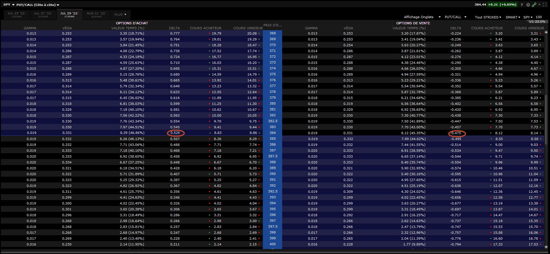 Lorsqu’un portefeuille contient différentes combinaisons d’options, il n’est pas toujours évident de se faire une bonne idée de l’exposition du portefeuille aux mouvements des sous-jacents. La solution est de regarder le delta de la totalité du portefeuille. Via LYNX, vous avez la possibilité de consulter la totalité du delta de votre portefeuille.