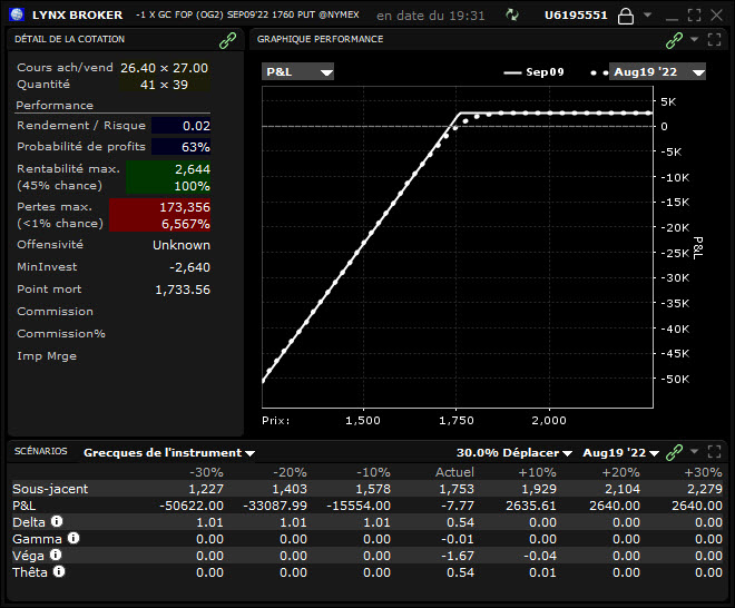 La plateforme de trading TWS disponible via LYNX vous permet de disposer de nombreux outils pour trader les options. Vous pouvez notamment afficher la valeur des grecques dans votre chaîne d’options. Découvrez notre offre en matière d’options :