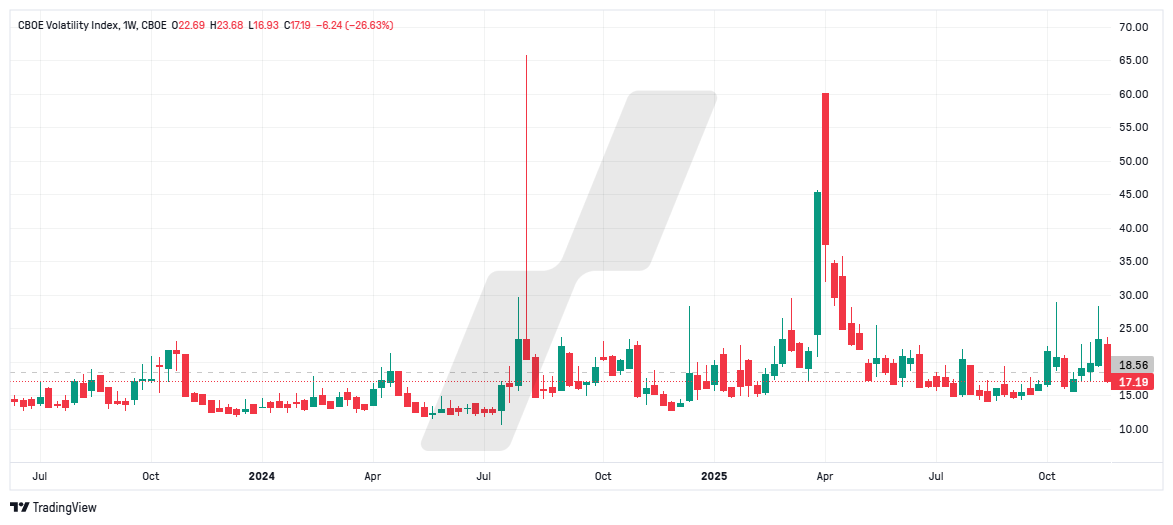 Graphique hebdomadaire du VIX. Source : plateforme LYNX+ (27 novembre 2025).
